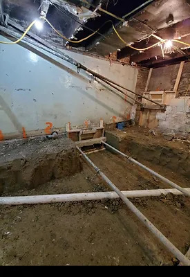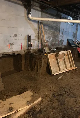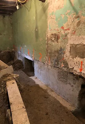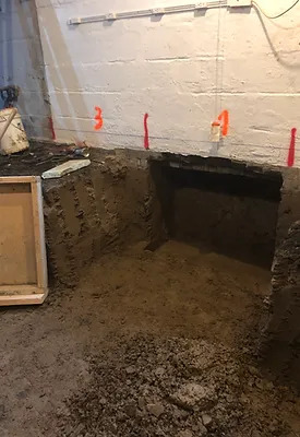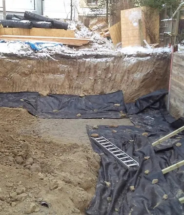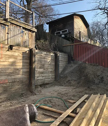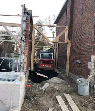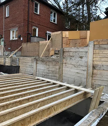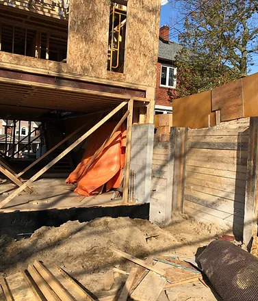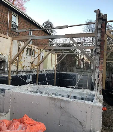 Underpinning is one of the easiest methods of increasing the depth of an existing foundation by constructing new footings beneath the existing footings.  Underpinning can also be used to strengthen an existing foundation or add a below-grade or partly below-grade entrance to an existing house. A foundation shall be designed and reviewed on-site by a professional engineer when it is constructed below the level of the footing of an adjacent building and within the angle of repose of the soil. The design must be sealed by a professional engineer and a complete Commitment to General Reviews must be submitted with your permit application.